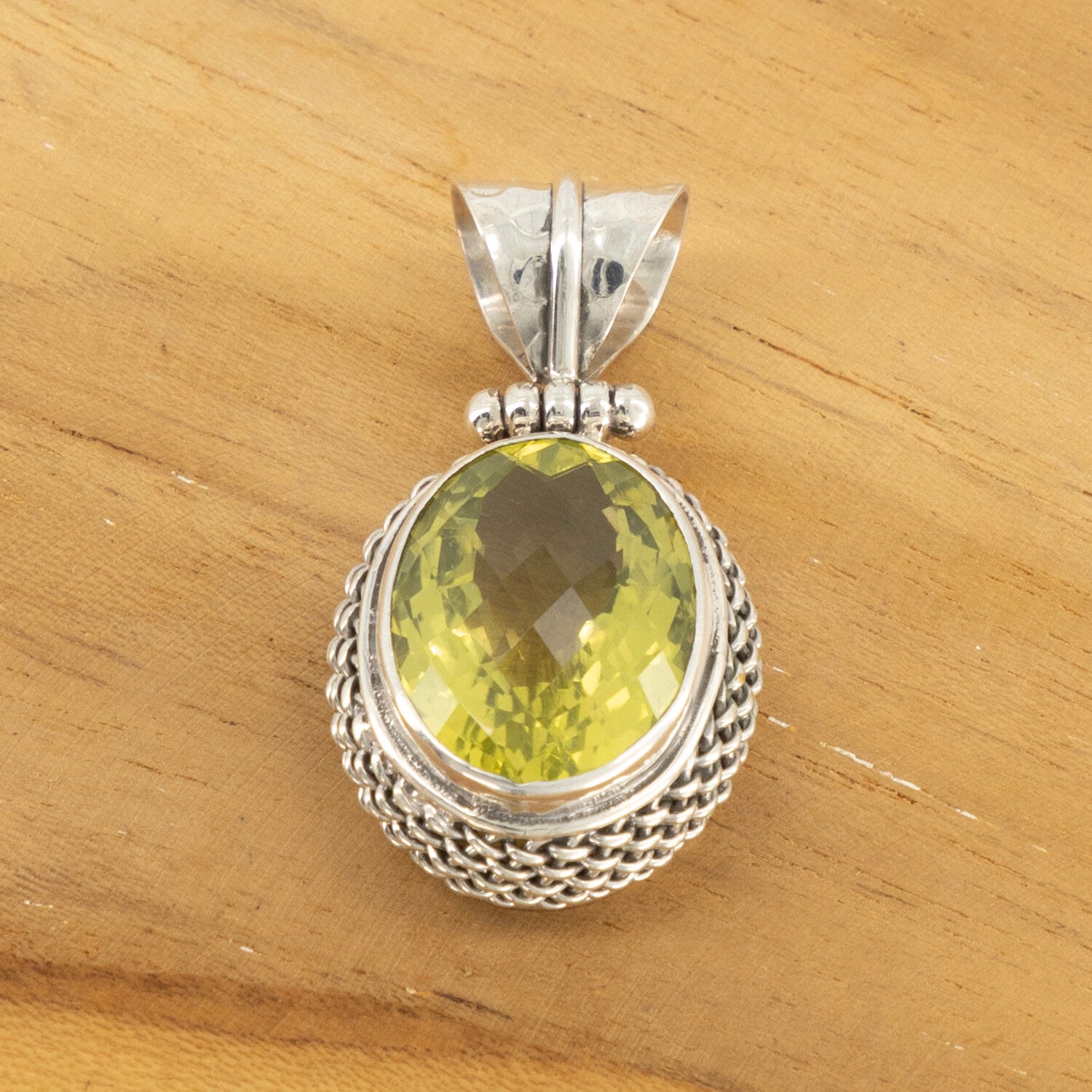 Massief zilveren hanger met een prachtig geslepen lemon kwarts steen. Gewicht: 12 gram. Lengte 2.5 cm en breedte 2 cm.