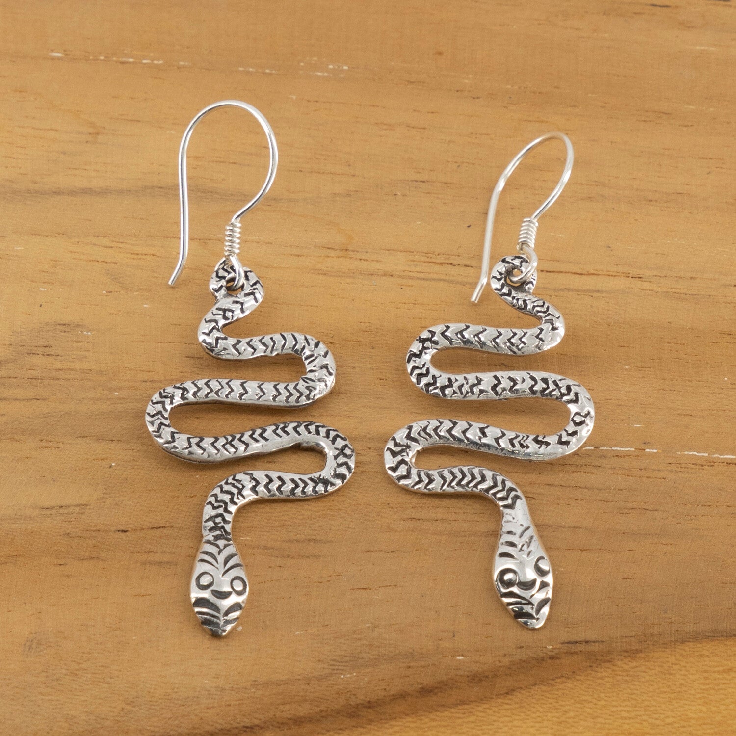 Prachtige massief zilveren oorhangers. Afmetingen slangmotief: 4 bij 2 cm. Gewicht 1 oorbel: 3,2 gram.