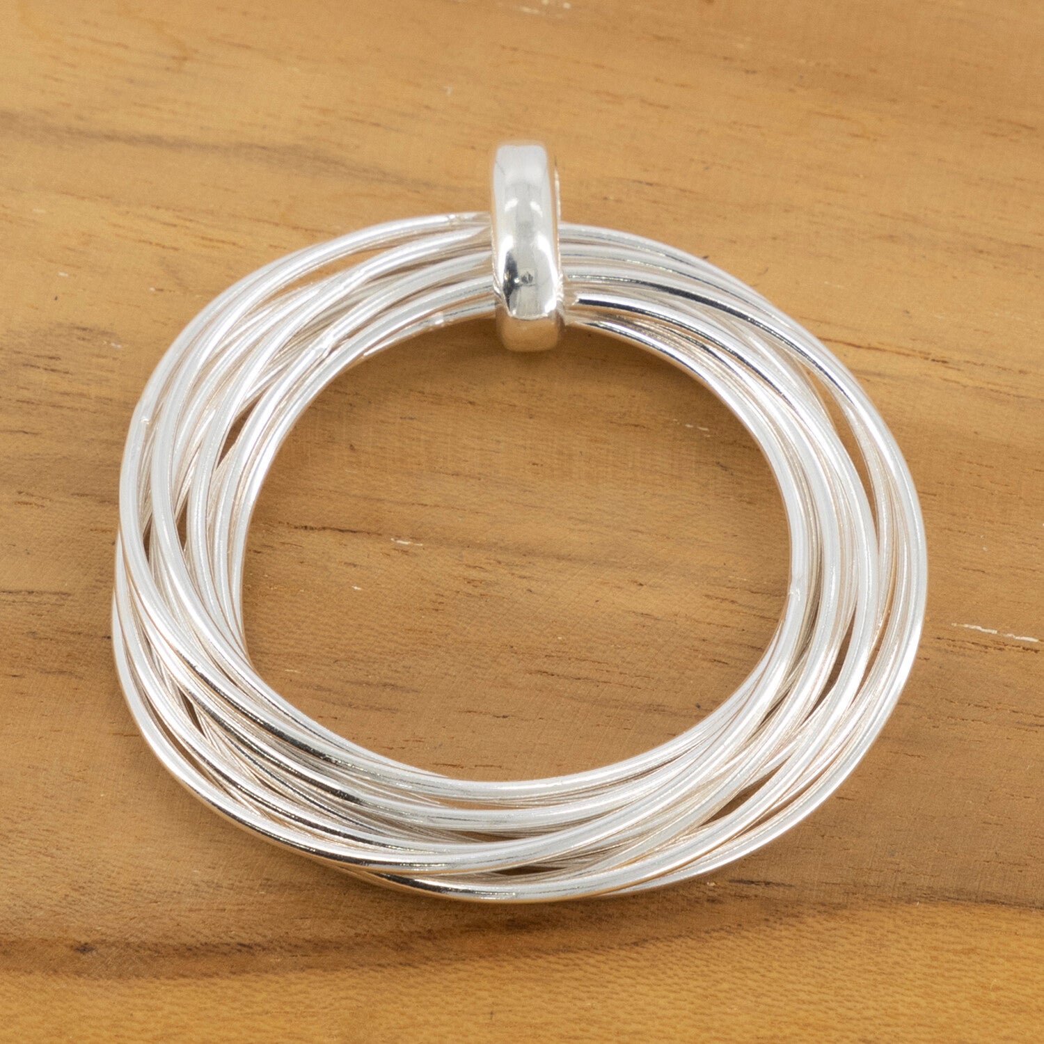 Fraaie massief zilveren hanger met een lengte breedte van 5 cm. De 12 ronden draden worden bijeen gehouden door bijpassende ovaal waareen collier of spang doorheen past. Gewicht: 25 gram.