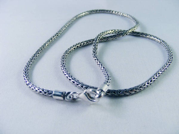 Mooi collier met slangmotief. Handgemaakt in Indonesie van 925 massief zilver met karabijn slot. Breedte: 2.7 mm