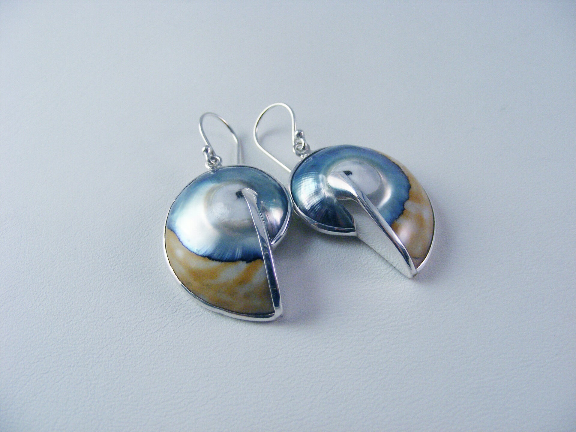 Zebra natural Nautilus Oorhangers in massief zilveren omlijsting.