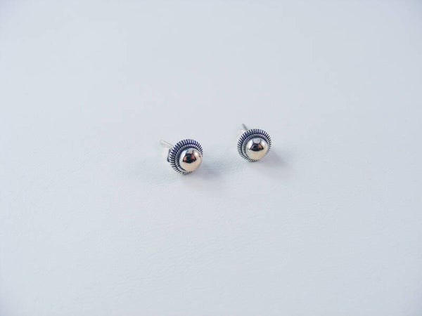 Massief zilveren ronde oorstekertjes met 14 karaats verguld middenstuk. Doorsnede: 7 mm. Hoogte vanaf oor: 5 mm.