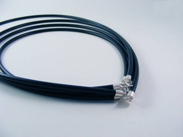 Rubberen koordje met massief zilveren karabijn slotje.Deze koordjes hebben een dikte van 4 mm.