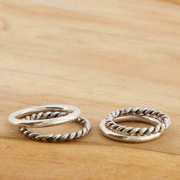 Mooie dubbel ring, glad en donker gedraaid. Massief 925 sterling zilver. Leverbaar in maat 14 t/m 23. Uiteraard ook los van elkaar te dragen.