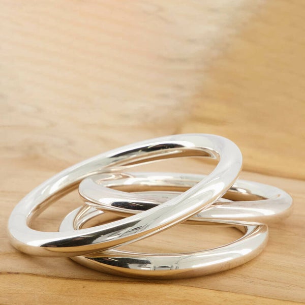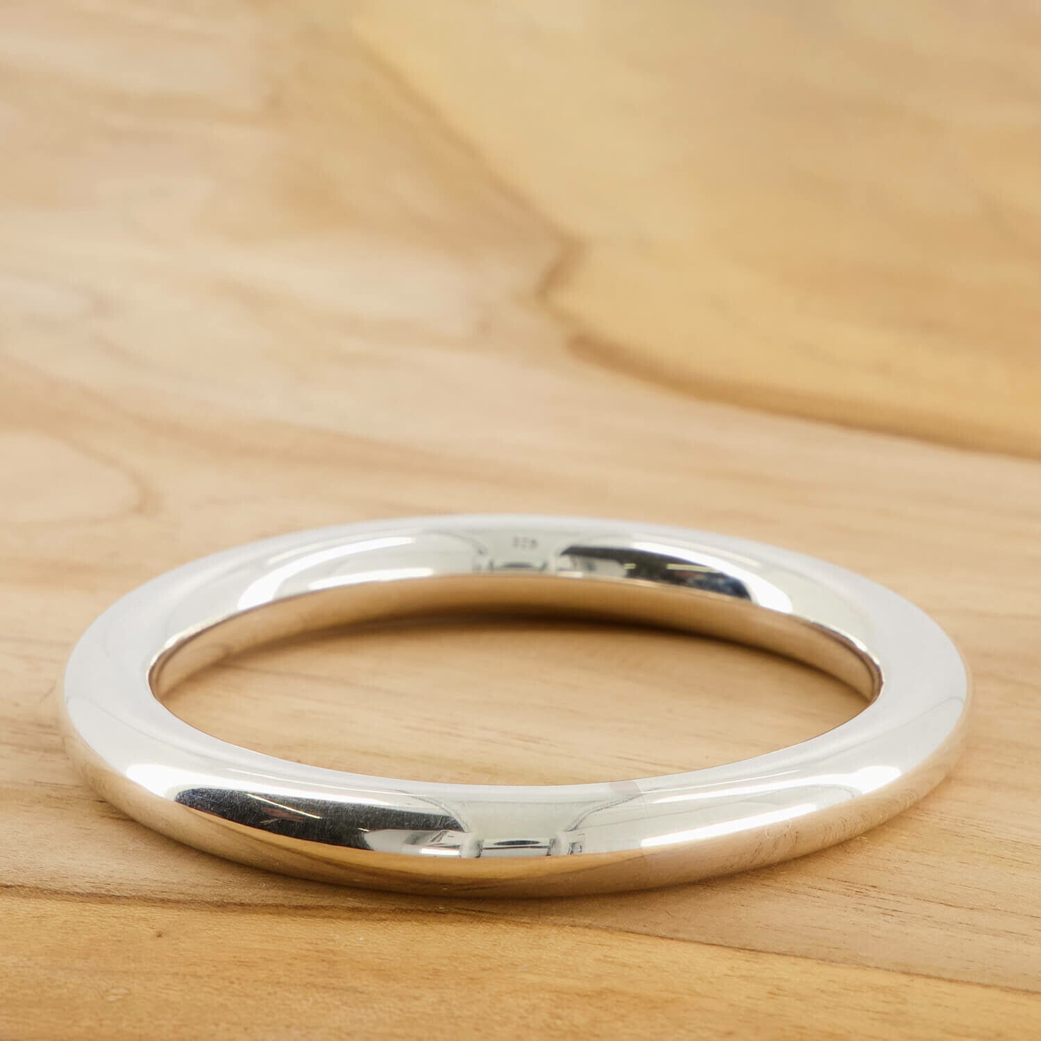 Stijlvolle ringband. Gladde brede band van 925 zilver. Breedte band: 10 mm. Gewicht: 28 gram. Deze banden zijn hol er kunnen in de loop der tijd deukjes ontstaan. Doorsnede gemeten van binnenkant to binnenkant. Geen slot gaat over de hand heen.