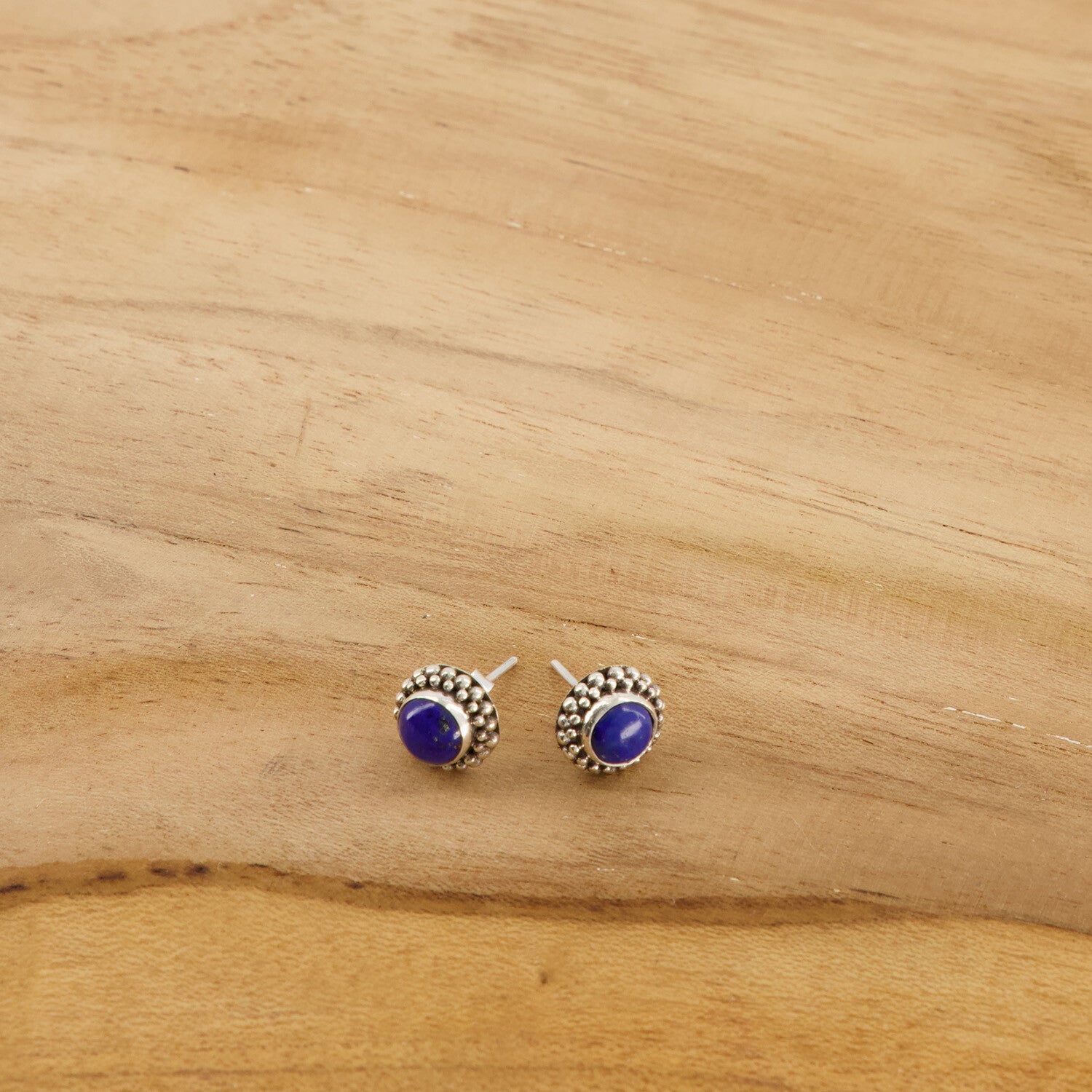 925 Sterling zilveren stekertjes met donkerblauw steentje. Mooi bewerkt aan de buitenkant. Lengte / Breedte: 9 mm.