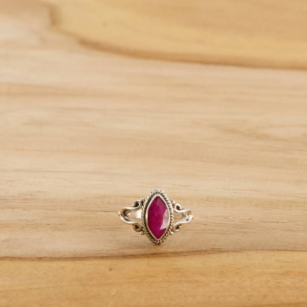 Massief zilveren ringetje met ruitvormig steentje van rubiliet.