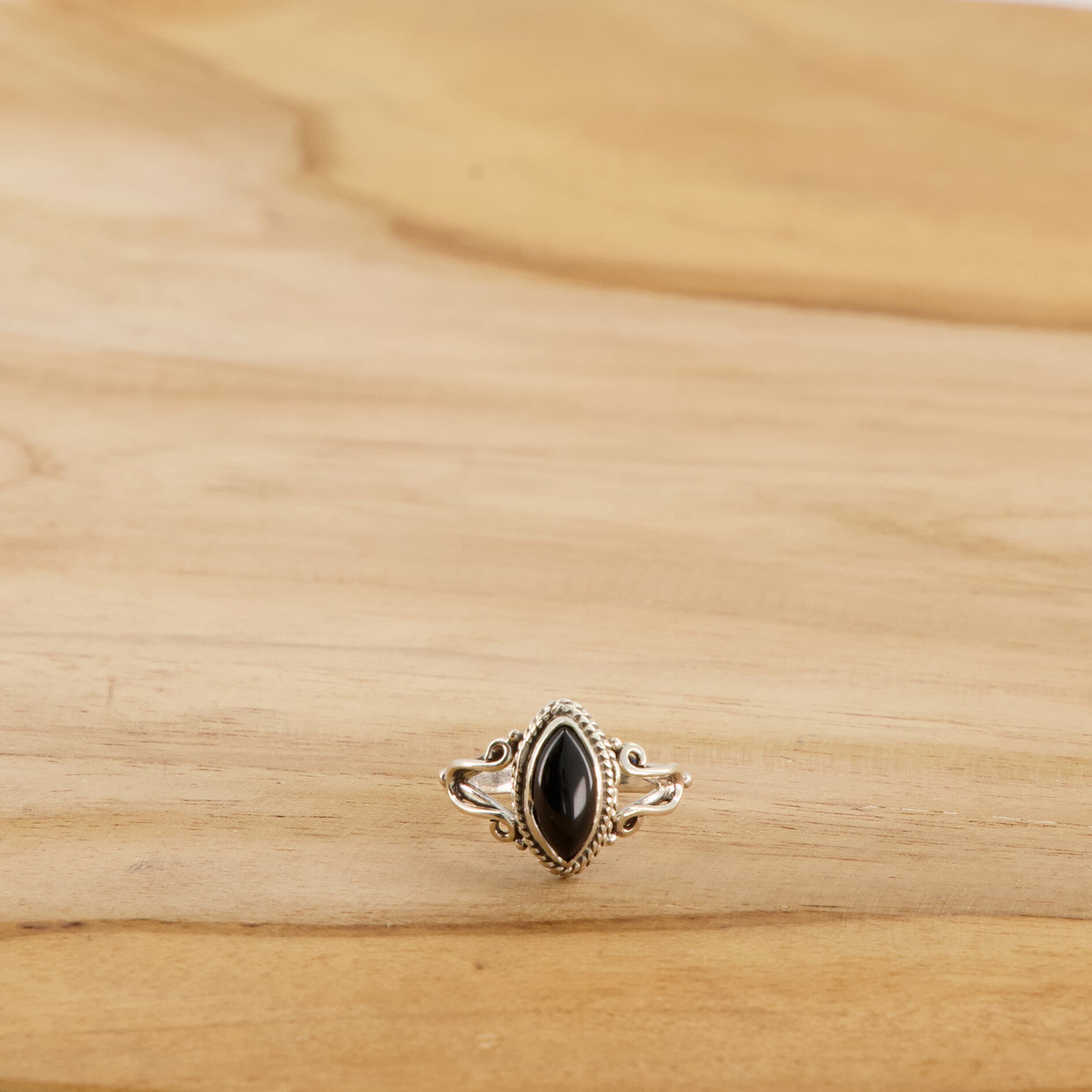 Zilveren ringetje met zwart steentje. massief hoogste gehalte zilver. 925.